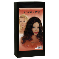 Pruik Latina € 49,95 Zwart met koperkleurige strengen. Ca. 40-45 cm. Met water en shampoo te reinigen.;