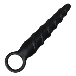 Screwtime € 12,95 Zwarte glijvriendelijke siliconen plug die zich bij elke draai dieper in uw anaal kanaal boort en daarbij met zijn uitgesproken ribbels elke lust zenuw zal stimuleren.