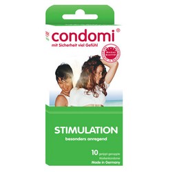 Condomi Stimulation (10 stuks) € 9,95 Condomi stimulatie zorgt voor extra stimulatie door de verschillende ribbels en bolletjes op de condoom. Alle Condomi condooms zijn electronisch getest.