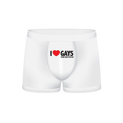 Funny Boxers: I Love Gays € 19,95 Deze grappige boxers zijn te gek! Ze zijn één maat dus passen altijd perfect. De boxers hebben verschillende teksten, kleuren en afbeeldingen. Kies de boxer die je het leukst vindt en verras je partner. Gemaakt van katoen.;