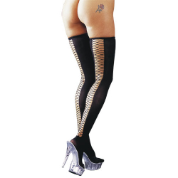 Kousen zwart met net-inzet € 9,95 Zelfophoudende niet-transparante kousen, met pikante net-inzet aan de achterkant!!