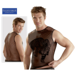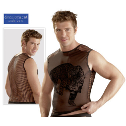 Shirt - Mix € 29,95 Shirt zonder mouwen, gemaakt van elastisch transparant powernet materiaal, welke is gecombineerd is met grof netstof materiaal. Aan de voorkant zit een tijger afbeelding. Materiaal: 60% Polyamid, 30% Polyester, 10% Elasthan.;